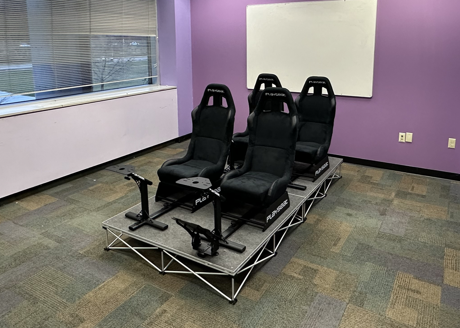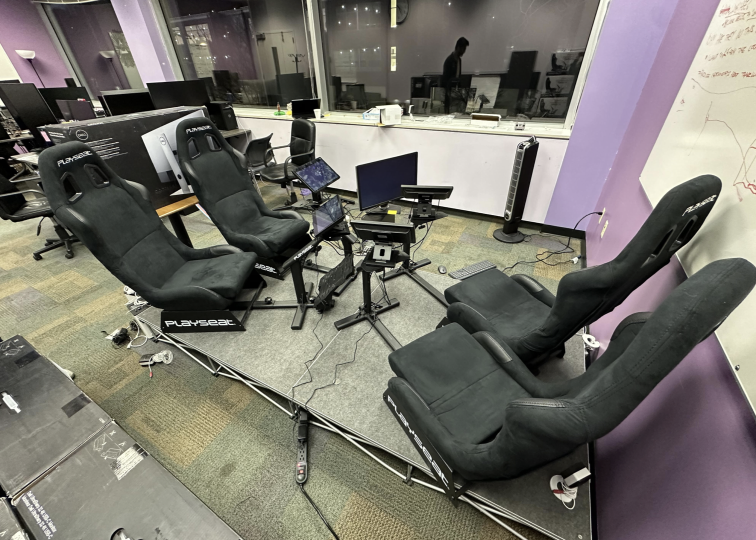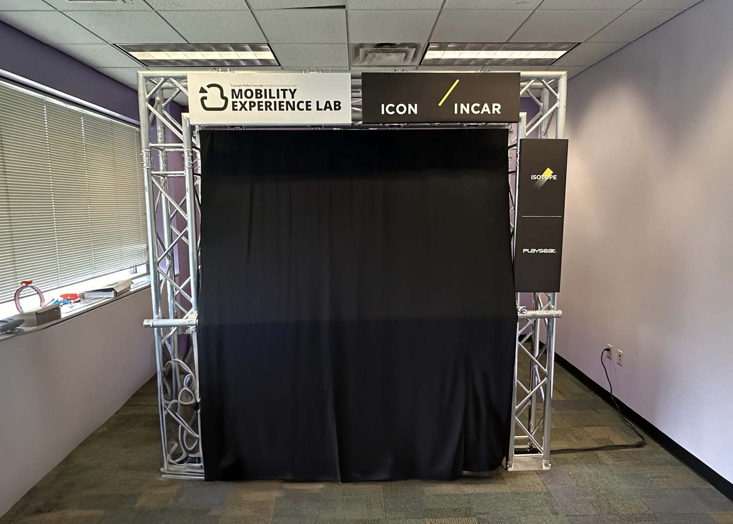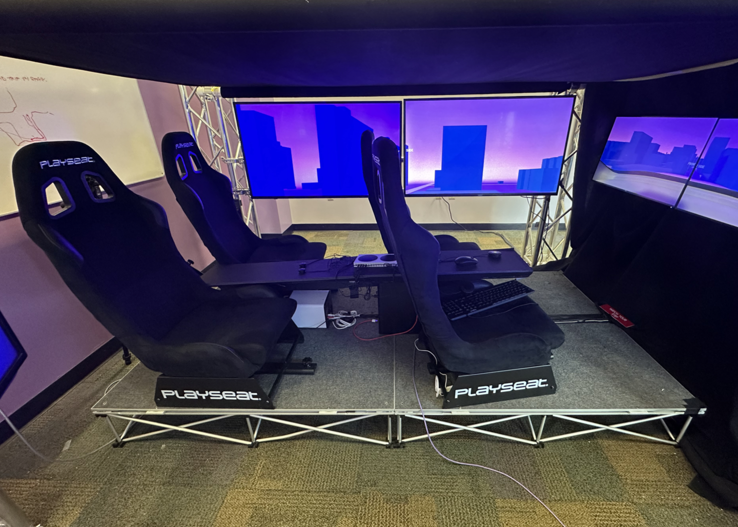 Before game development began students built a prototype bench to simulate an autonomous vehicle interior.